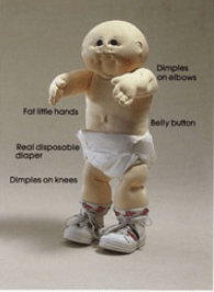 And, by summer 1983, after a promising early release in February, the revamped Cabbage Patch Kids were ready to hit the proverbial shelves – or, at least, the fictional adoption centres that Coleco invented to promote them in a huge marketing push.. Coleco boasted of unique, affordable dolls with “individual expressive faces” and “his or her own special name and personality profile”, with each doll replete with adoption papers for “parents” to treasure. Roberts had rather creatively re-imagined himself in the box blurb for the dolls as a curious ten-year-old boy who had “discovered the Cabbage Patch Kids….behind a waterfall into a magical Cabbage Patch, where he found the Cabbage Patch babies being born”. They had fat little hands, for God’s sake – these kids didn’t stand a chance against the onslaught of cuteness that was heading in their direction. Just look at this useful diagram!
